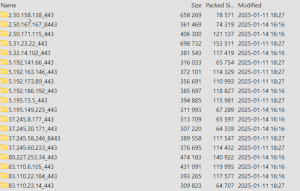La filtración incluye un archivo de 1.6 GB con carpetas organizadas por país. Cada carpeta contiene subcarpetas con direcciones IP de dispositivos FortiGate en cada país. Según el experto en ciberseguridad Kevin Beaumont, cada dirección IP tiene un archivo de configuración y un archivo de contraseñas de VPN.